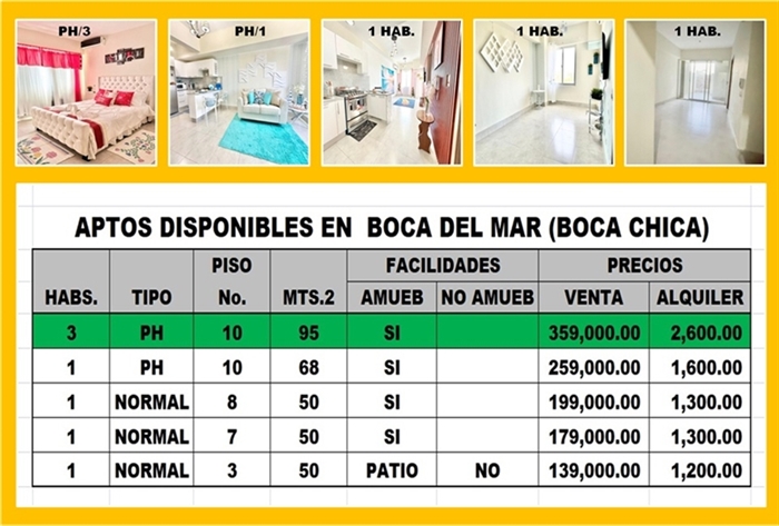 EL APTO ESTAN UBICADOS EN EL PISO 3 DE LA TORRE BOCA DEL MAR III EN BOCA CHICA.