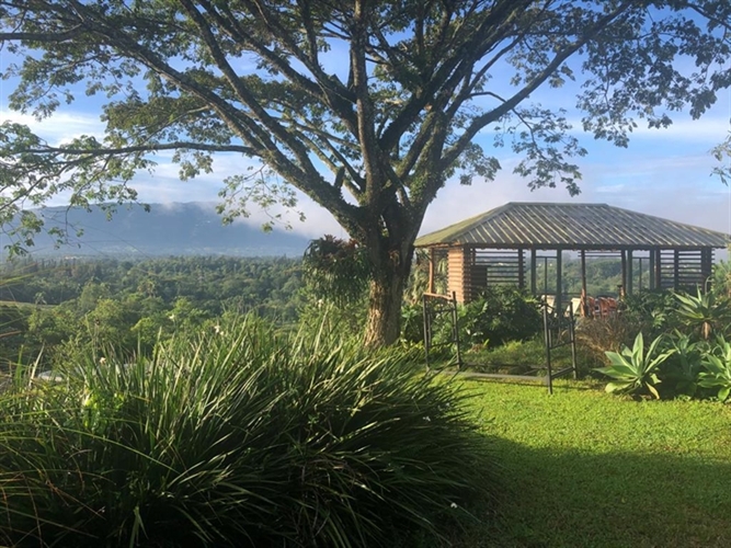 Rodeada de naturaleza en esta hermosa villa con amplio patio, vista panorámica a las montañas y abrazada del un caudaloso río.