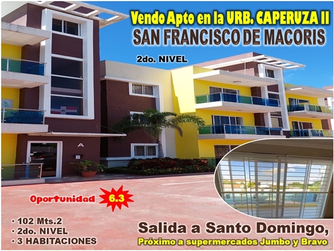 Vendo Apto 3 HABS., 2do. NIVEL, SAN FCO MACORIS, URB. CAPERUZA II, Salida a Santo Domingo