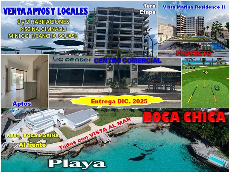 PROYECTO APTOS, TODOS CON VISTA AL MAR, en BOCA CHICA, PLAYA AL FRENTE y a Pasos de los Principales Restaurantes del Area: BOCA MARINA, ST. TROPEZ, NEPTUNO, entre otros.