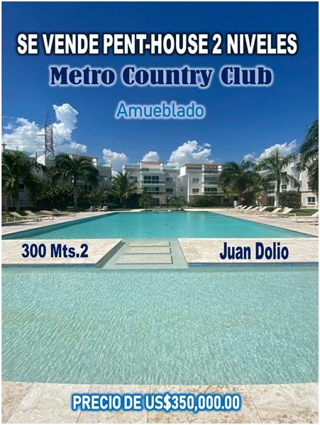 SE VENDE PENTHOUSE de LUJO, AMUEBLADO en Metro Country Club, JUAN DOLIO, 300 MTS.2, 4 HABS., TERRAZA Y REBAJADO, con las siguientes facilidades: