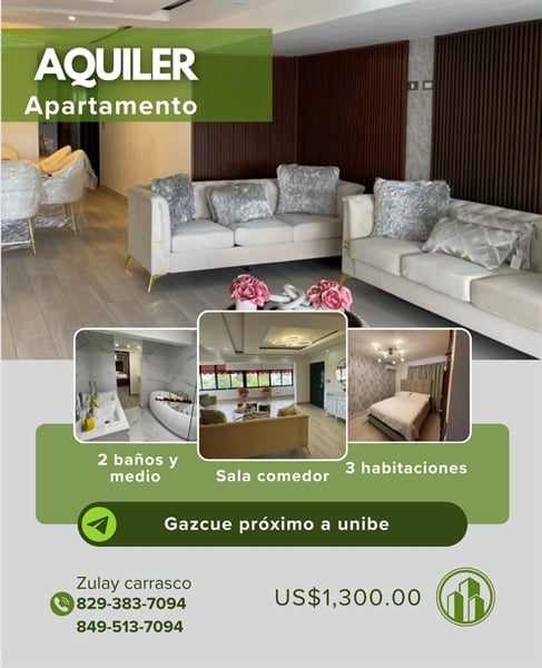 Alquiler de Apartamento Amueblado en Gazcue – Próximo a la Universidad UNIBE