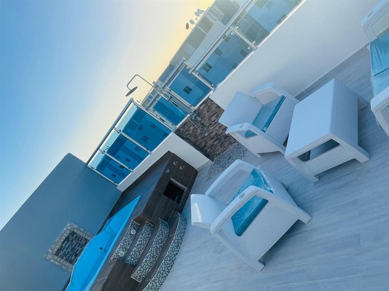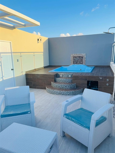 apartamento dos niveles, Tres Habitaciones, dos baños, balcón, terraza amplia, jacuzzi privado en terraza del apartamento, opción de comprar amueblado o sin muebles, área social con piscina, barbecue, plaza comercial. Mas Información llamar 1-829-343-1001