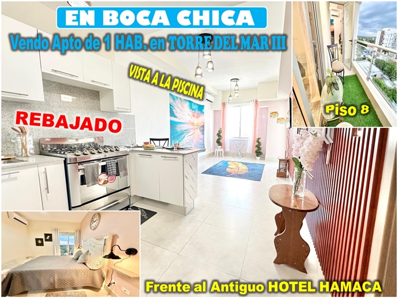 APTO REBAJADO EN BOCA CHICA. 1 HAB., 61 Mts.2, PISO 8, TORRE BOCA DEL MAR III