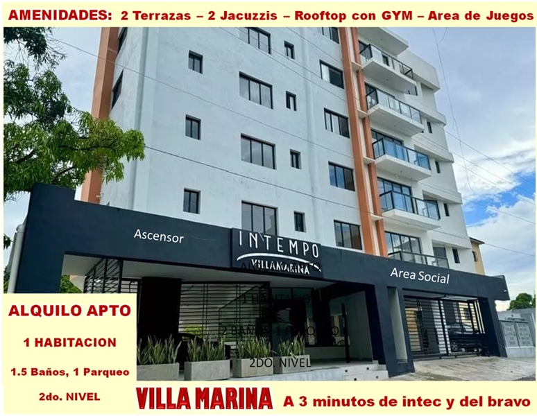 El Apto en la ubicado en la Torre Intempo de Villa Marina, a 2 minutos de AV. LOS PROCERES, El BRAVO, INTEC.