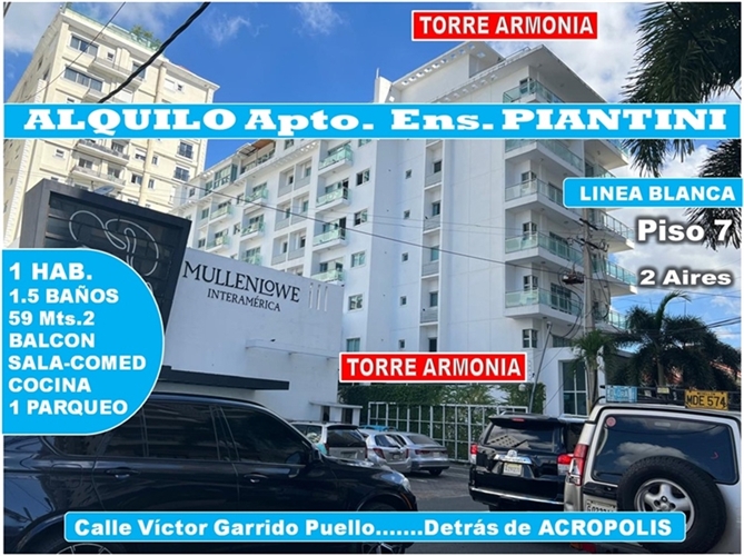 EL APTO ESTA UBICADO EN LA CALLE VICTOR GARRIDO PUELLO, TORRE ARMONIA 17 DEL ENSANCHE PIANTINI, DISTRITO NACIONAL.