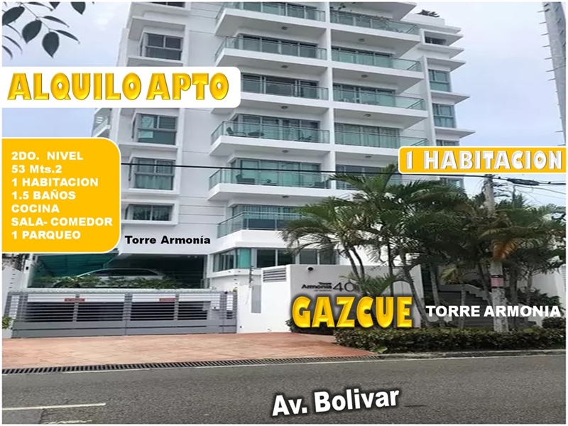 ALQUILO APTO 1 HAB. EN TORRE ARMONIA DE GAZCUE 2DO. NIVEL
