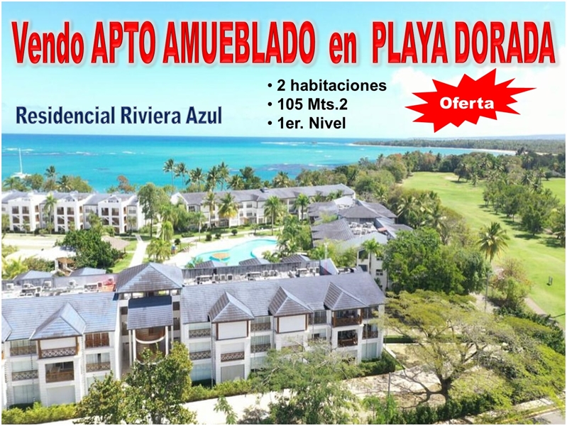 Vendo Apto Amueblado en Playa Dorada, 2 HABS., 105 Mts.2, PUERTO PLATA, Res. Riviera Azul