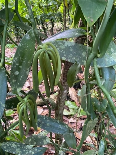 En los años 2022-2023 sembramos entre las plantas de cacao 3500 plantas de vainilla, que actualmente están parcialmente en Producción, y todas deberían entrar en producción completa en la próxima cosecha. ENERGIA ELECTRICA A 300 METROS.