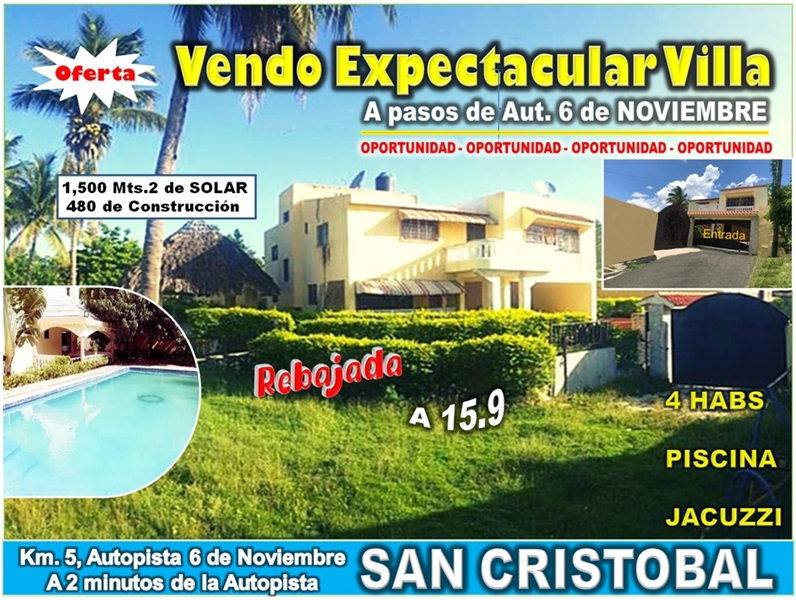 EL MEJOR NEGOCIO, INVIERTA EN ESTA VILLA EN SAN CRISTOBAL, Aut. 6 de Noviembre, a 1 minuto de la Autopista, REBAJADA.