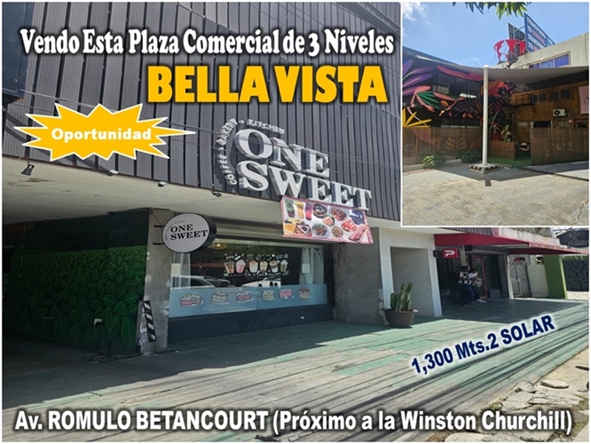 Presentamos en venta Propiedad única estratégicamente ubicada sobre la Avenida Rómulo Betancourt, a solo 55 metros de la intersección con la Calle Juan Miguel Román y unos 300 m2 de la Winston Churchill, en el prestigioso sector Bella Vista, Distrito Nacional.