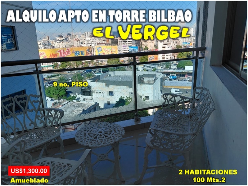 ALQUILO APTO 2 HABS EN EL VERGE, TORRE BILBAO, 100 Mts.2, piso 9