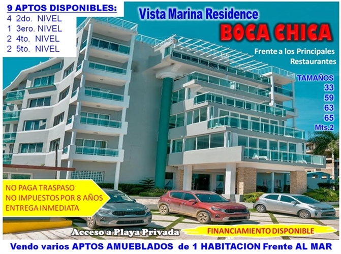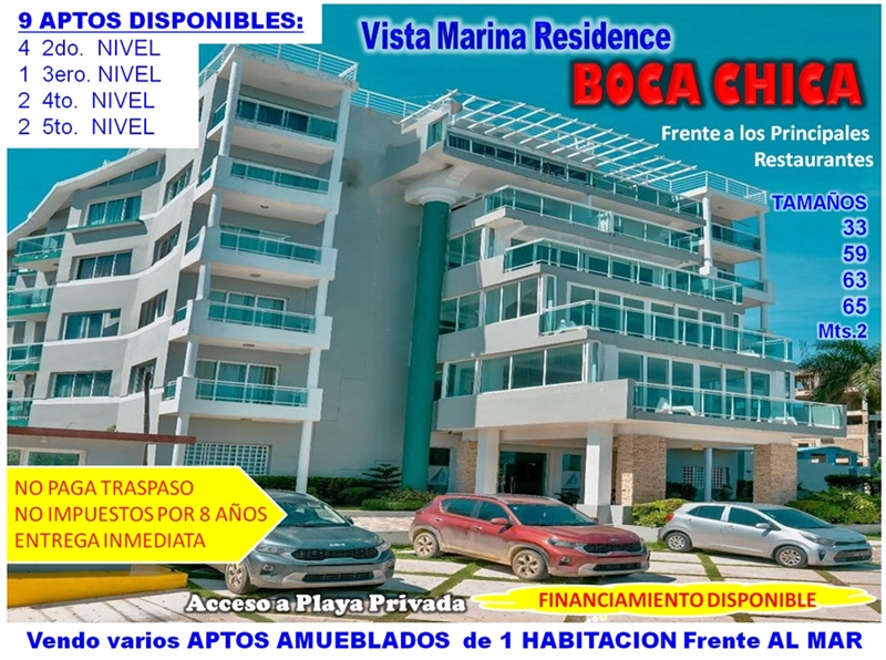 VENDO APTOS AMUEBLADOS, de 1 HABITACION EN BOCA CHICA, TORRE VISTA MARINA RESIDENCE, FRENTE AL MAR