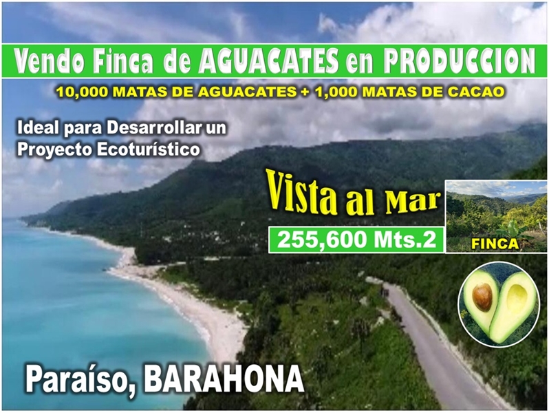 Vendo Finca de AGUACATE en PRODUCCION en Paraíso, BARAHONA, 255,600 Mts.2, VISTA AL MAR