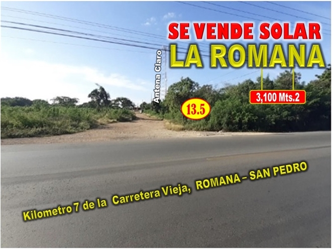 SE VENDE SOLAR 3,100 Mts.2 en EL Km. 7, ROMANA, Carretera ROMANA – SAN PEDRO DE MACORIS... EN LA MISMA CARRETERA