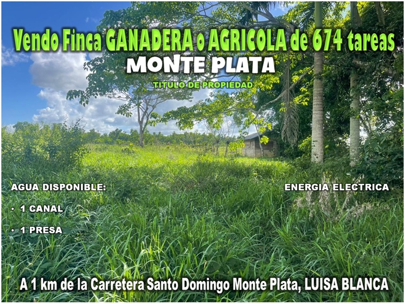 Vendo Finca GANADERA o AGRICOLA de 674 TAREAS en LUISA BLANCA, Monte Plata