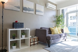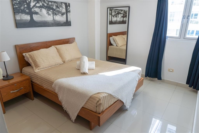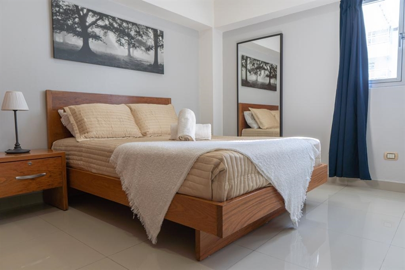 Alquilo apartamento Amueblado, piso alto, 1 habitación con baño, sala comedor, cocina, área de lavado, Aire Acondicionado en todas las aéreas, balcón incorporado a la sala, 1 parqueo techado, portón eléctrico, seguridad 24/7, 2 ascensores, terraza techada y al aire libre, salón de eventos, gimnasio, planta eléctrica