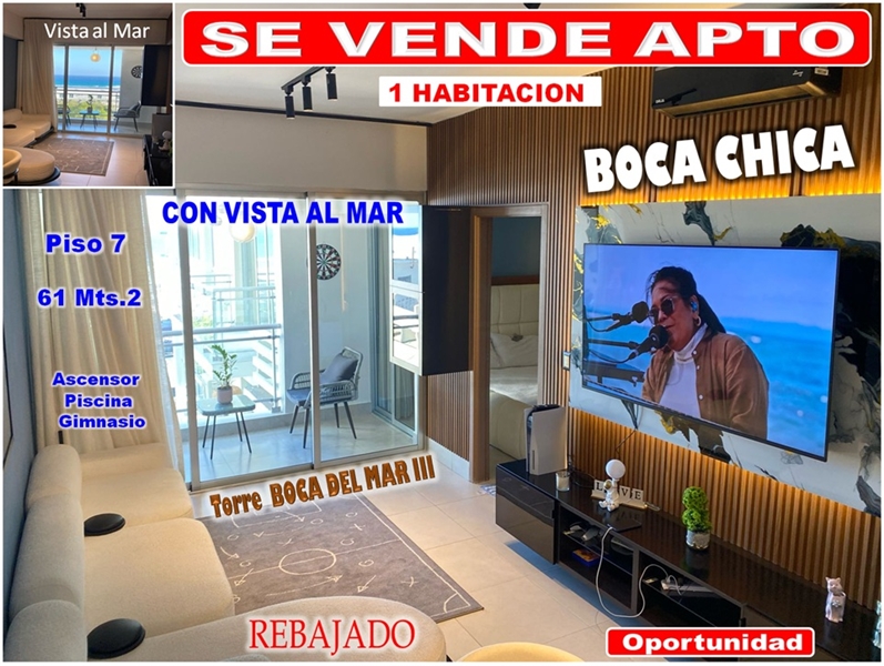 EL APTO ESTA UBICADO EN EL 7 PISO DE LA TORRE BOCA DEL MAR III DE BOCA CHICA.