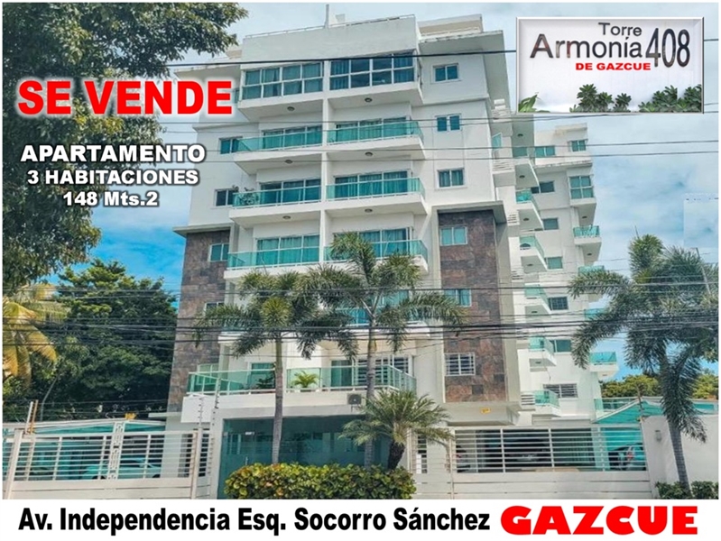 El Apto Esta ubicado en la TORRE ARMONIA 408 de GAZCUE, Av. Independencia esq. Socorro Sánchez, Distrito Nacional.