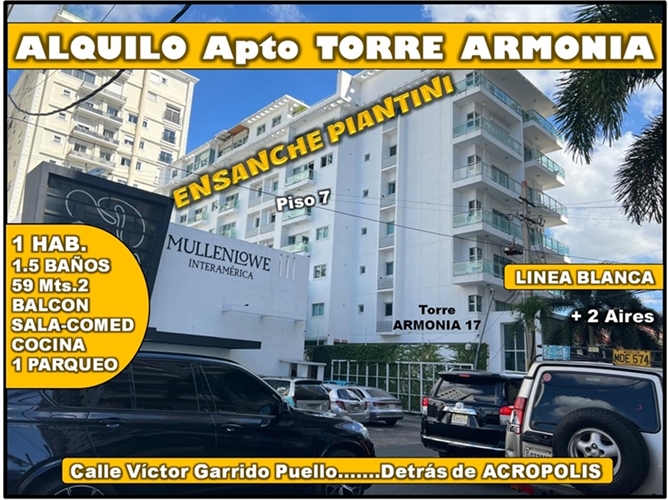 EL APTO ESTA UBICADO EN LA CALLE VICTOR GARRIDO PUELLO, TORRE ARMONIA 17 DEL ENSANCHE PIANTINI, DISTRITO NACIONAL.