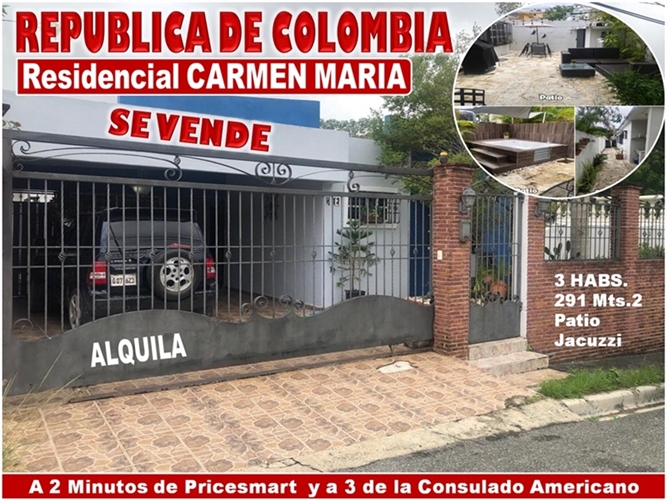 Vendo Casa REMODELADA en LA REPUBLICA DE COLOMBIA, Res. Carmen María, 3 HABS., 291 Mts.2, Patio, Jacuzzi, con las siguientes facilidades: