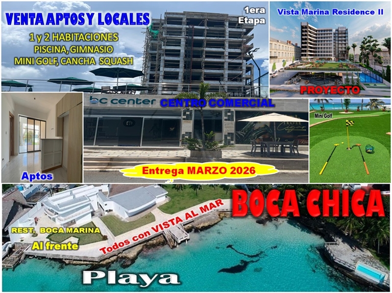 EXCLUSIVO PROYECTO APTOS EN BOCA CHICA, TODOS CON VISTA AL MAR (A 50 Mts.), a Pasos de los Principales Restaurantes del Area: BOCA MARINA, ST. TROPEZ, NEPTUNO, entre otros.