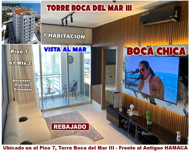 EL APTO ESTA UBICADO EN EL 7 PISO DE LA TORRE BOCA DEL MAR III DE BOCA CHICA.