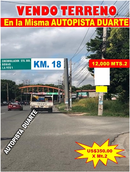 (OJO)…VENDO TAMBIEN 12,000 METROS EN LA MISMA AUTOPISTA DUARTE, A 200 METROS DE ESTA PROPIEDAD, CON PRECIO DE US$4,200,000.00 DOLARES
