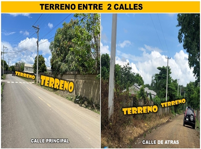 El Terreno está ubicado en PEDRO BRAND, Entrando por el SEMAFORO DEL KM. 25, a 3 minutos de la Autopista (Literal), en el Sector Los Trinitarios.