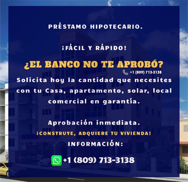 Solicita hoy la cantidad que necesites, con tu Casa, apartamento, solar, local comercial en garantía.
