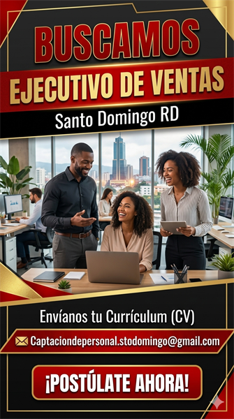 SOLICITAMOS EJECUTIVOS DE VENTAS EN DISTRITO NACIONAL Ó ZONAS ALEDAÑAS, REPUBLICA DOMINICANA