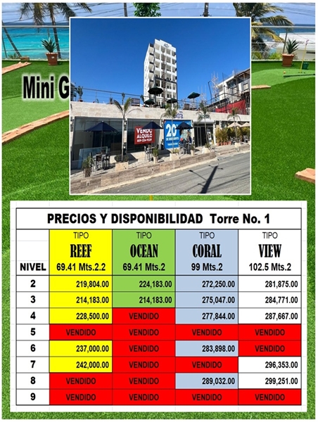 Apartamentos de 1 y 2 habitaciones, estratégicamente ubicados todos con vista al mar desde Balcones y habitación principal.