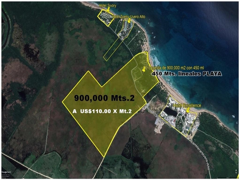 900,000 Mts.2 (Con 450 Mt. L. PLAYA), a US$110.00 X Mt2