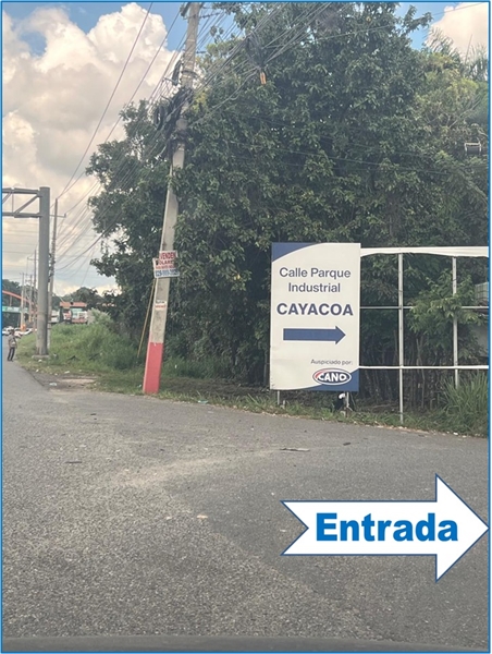 El Terreno está ubicado en el Parque Industrial Cayacoa del Kilometro 18 de la Autopista Duarte, a 200 metros de la Autopista en Calle Asfaltada, area de Naves y Almacenes e Industrias.