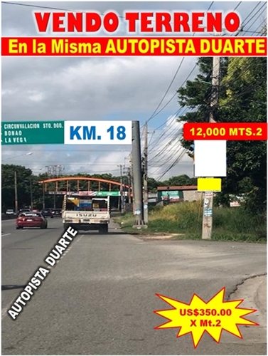 (OJO)…VENDO TAMBIEN 12,000 METROS EN LA MISMA AUTOPISTA DUARTE, A 200 METROS DE ESTA PROPIEDAD, CON PRECIO DE US$4,200,000.00 DOLARES