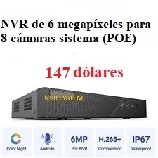 Grabador Nvr full HD de 6 megapíxel para 8 cámaras ip con sistema poe