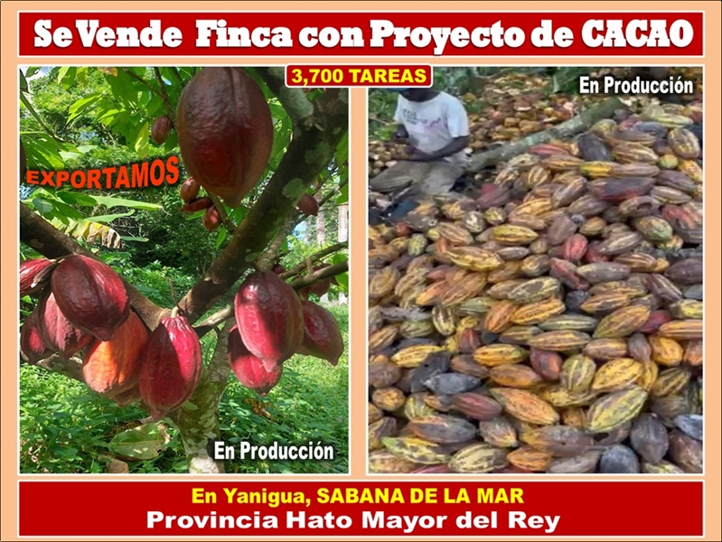 Vendo Finca de 3,700 tareas CON PROYECTO CACAO EN SABANA DE LA MAR (Cacao de Alto Rendimiento)