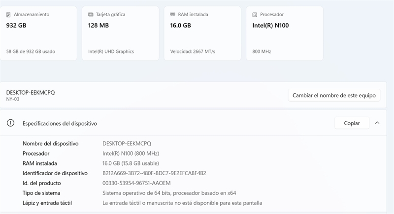 Procesador Intel N100(800 Mhz)