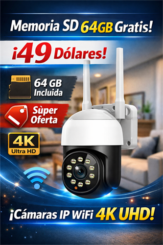 -Cámaras 4k UHD + micro sd 64gb en 49 dólares o el equivalente en pesos