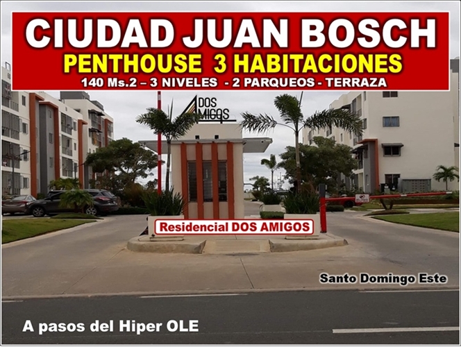 VENDO PENTHOUSE CON TERRAZA en CIUDAD JUAN BOSCH, 3 HABS., 140 Mts.2, Res. DOS AMIGOS Y REBAJADO, con las siguientes facilidades: