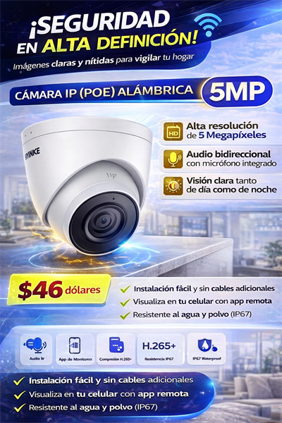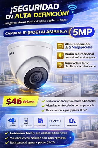 -Cámaras ip alámbricas de 5 megapíxel full alta definición ideal para que obtengas imágenes más claras