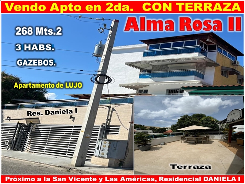SUPER Apto de Lujo, 2do. Nivel CON TERRAZA y GAZEBOS, Alma Rosa II, Santo Domingo Este.