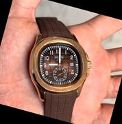Reloj NIBOSI 1985, un modelo que rinde homenaje al diseño del icónico Patek Philippe Aquanaut. Este reloj se caracteriza por su estética “sport-luxury”, combinando una caja con acabado en tono oro rosa y una correa de goma marrón texturizada.
