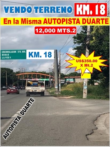 VENDO 12,000 Mts.2 en la MISMA AUTOPISTA DUARTE, Km 18 de OPORTUNIDAD