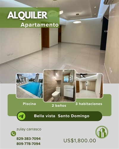 Apartamento en alquiler con línea blanca en Bella Vista Sur, Santo Domingo
